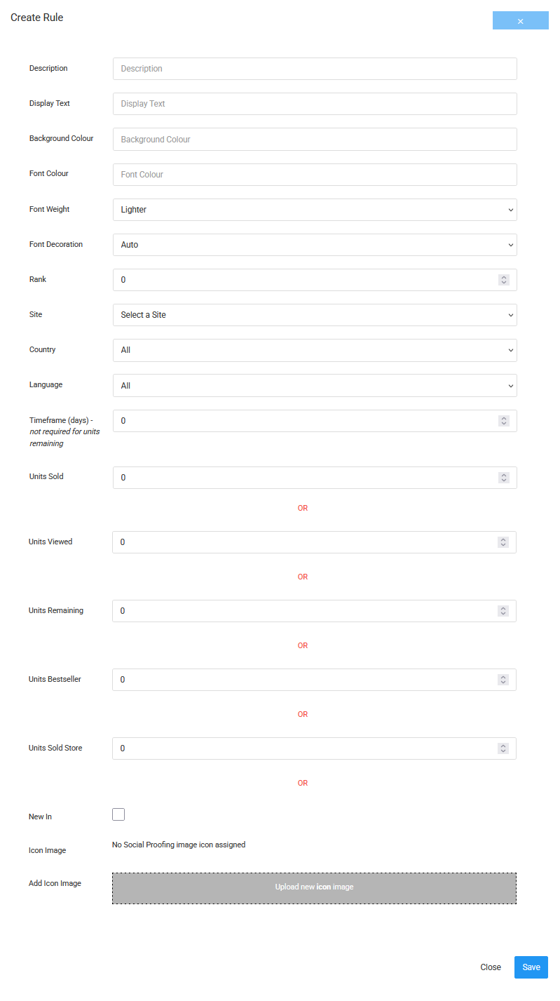Here you can create a social proofing rule, the previous section explains what should be entered for each box.